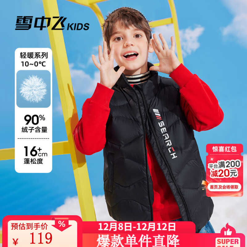 包邮 雪中飞【集合】儿童羽绒服羽绒马甲男中大童装轻薄羽绒外套女童冬季背心 黑色(图标) 170